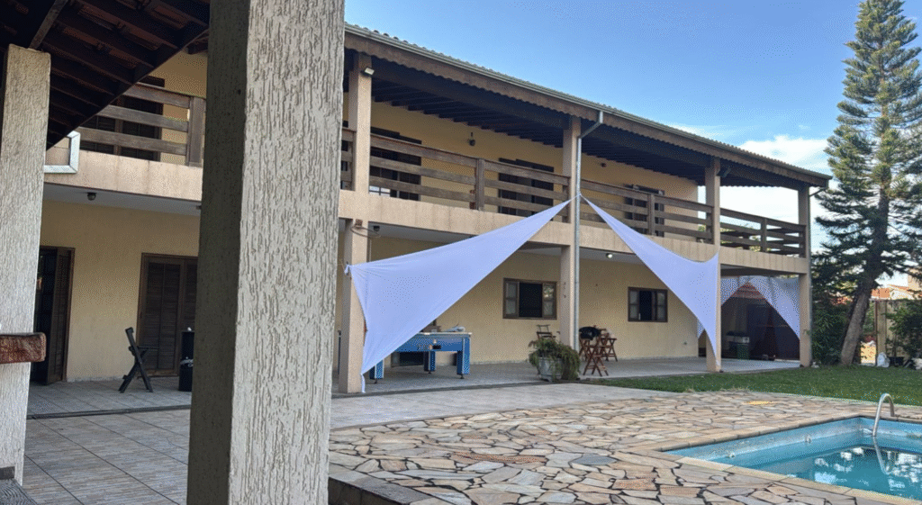 Acomodações e Benefícios A casa possui 6 quartos, todos com ar-condicionado. Quartos: Opções de suíte com TV Smart e quartos comuns com TV ou sacada. Comodidades: Wi-fi, aquecedor nas duchas e torneiras, área gourmet com churrasqueira, piscina e garagem grande. 🚘 Cozinha: Equipada com fogão, geladeira, micro-ondas e utensílios domésticos. Itens Inclusos: Toalhas de banho, […]